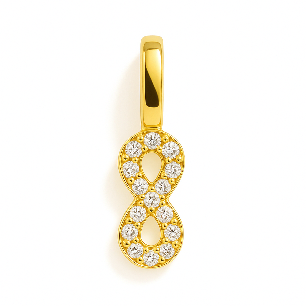 Nuestro Charm Infinito combina este símbolo atemporal con brillantes piedras de circonia cúbica que reflejan la luz con cada movimiento.