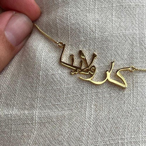 Nuestro icónico collar con nombre en letras árabes es un bestseller por una buena razón: Hecho a mano con experiencia y recubierto con oro de 14K, plata esterlina 925 o oro rosado de 14K, es un regalo único para ti o para un ser querido.